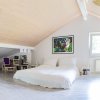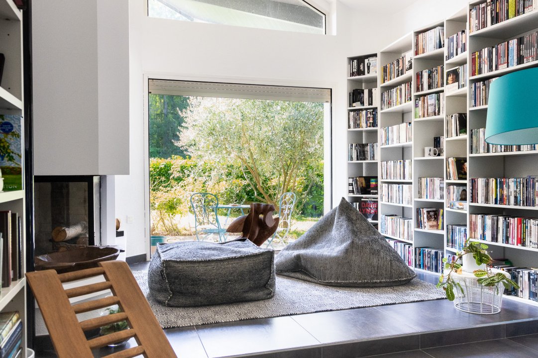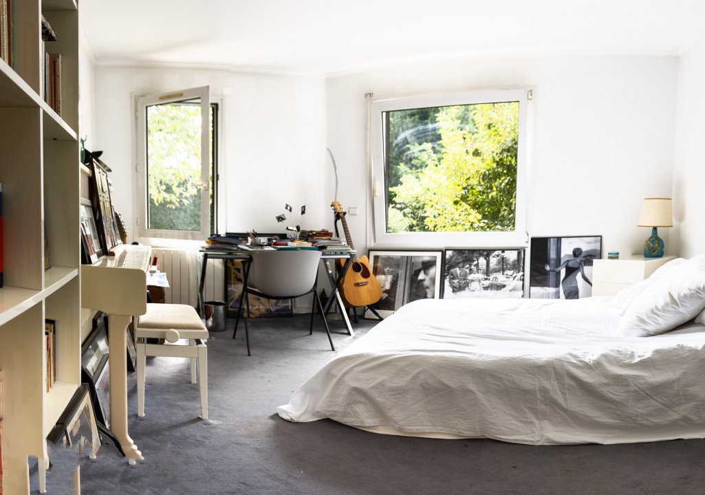 À l’étage, se trouvent une grande chambre supplémentaire avec salle de bain et un bureau baigné de lumière, idéal pour le télétravail.